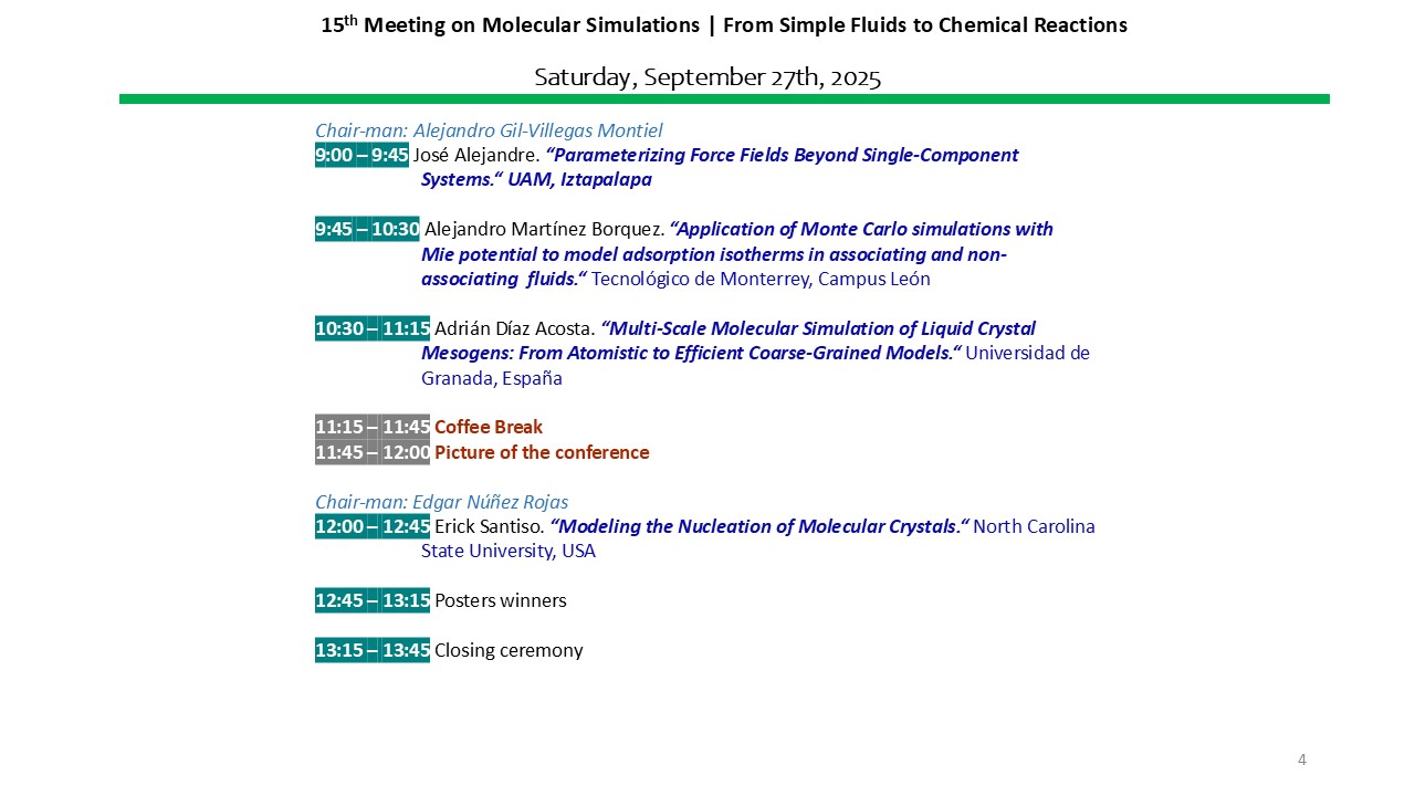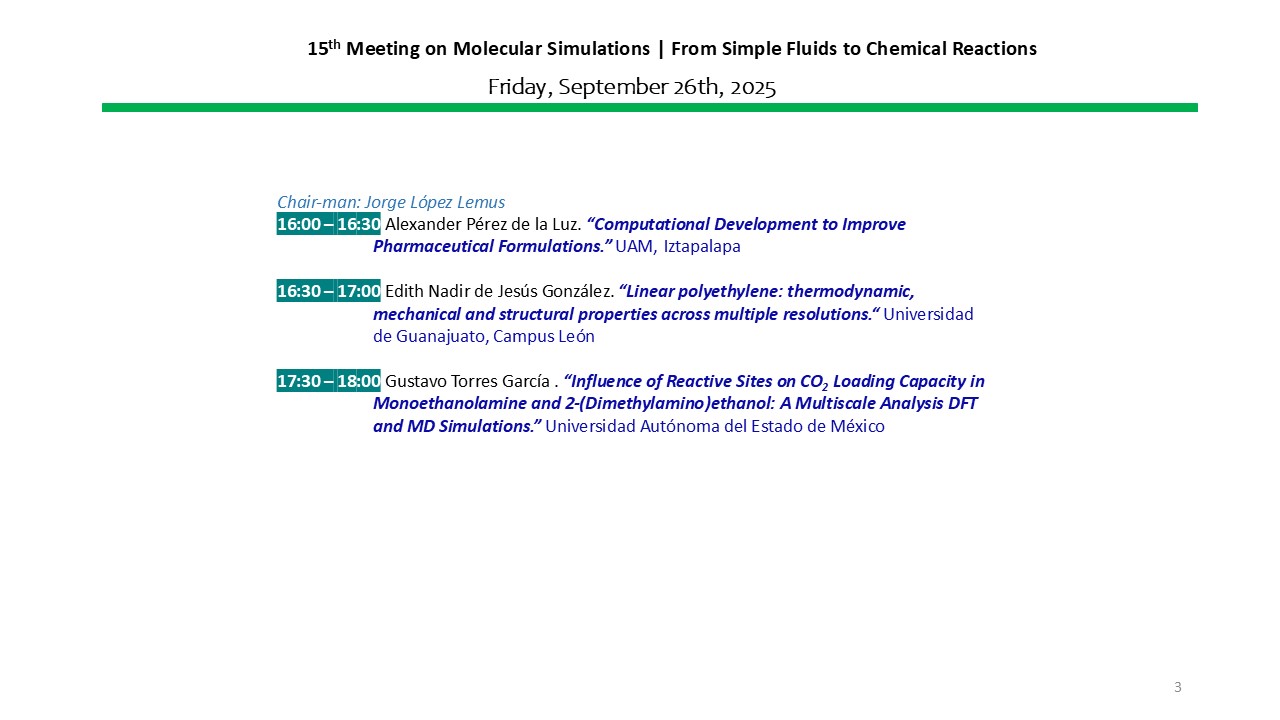 15th MEETING ON MOLECULAR SIMULATION - POSTERS